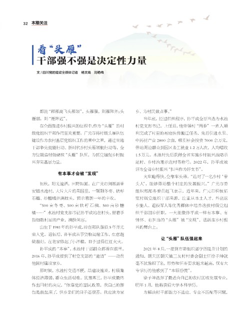 都说“群雁高飞头雁领”,头雁强,则雁阵齐;头 乡、为村民做点事。”