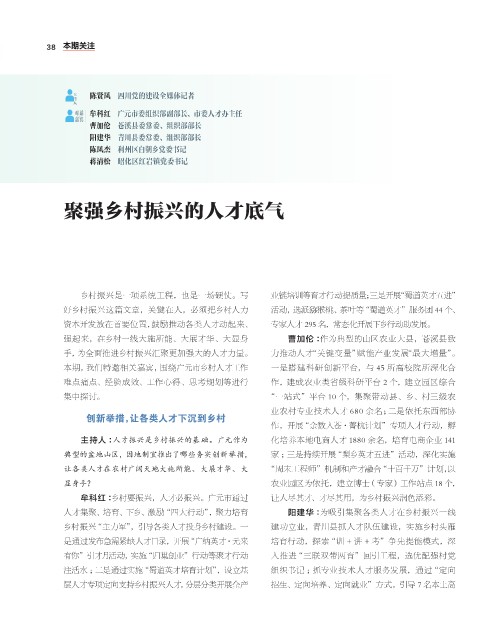注活水 ;二是通过实施“蜀道英才培育计划”,设立基 组织书记 ;抓专业技术人才服务发展,通过“定向