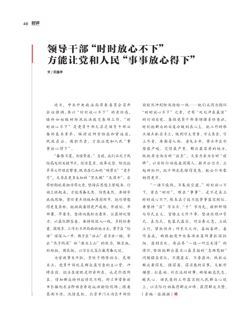 时放心不下” 是党员干 部尤其是领导干 部必 时刻把群众的安危冷暖刻在心上、把工作的难