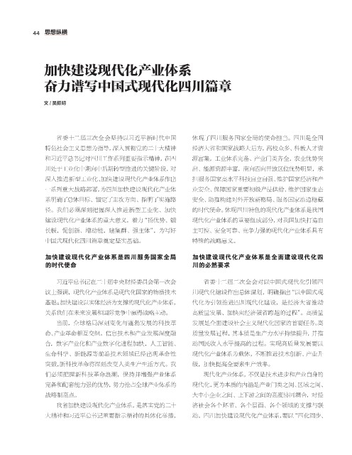 径。我们必须深刻把握深入推进新型工业化、加快 的时代使命。体现四川特色的现代化产业体系是我国