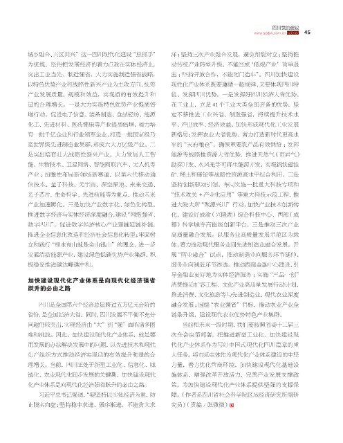 城乡融合、五区共兴”这一四川现代化建设“总抓手” 洋;坚持三次产业融合发展,避免割裂对立;坚持推