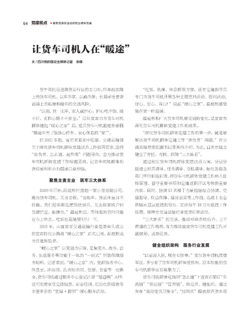 自 2021 年起,宜宾市紧扣中组部、交通运输部 解决货车司机群体党建工作‘谁负责’问题。”市交