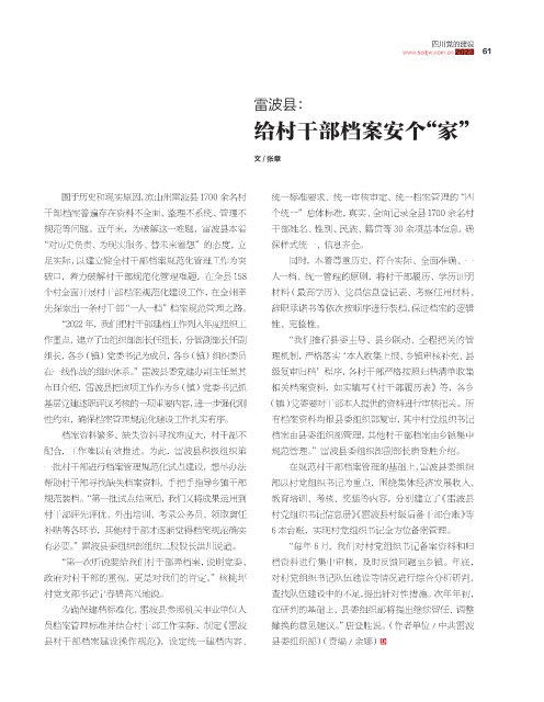 “2022 年,我们把村干部建档工作列入年度组织工 性、完整性。