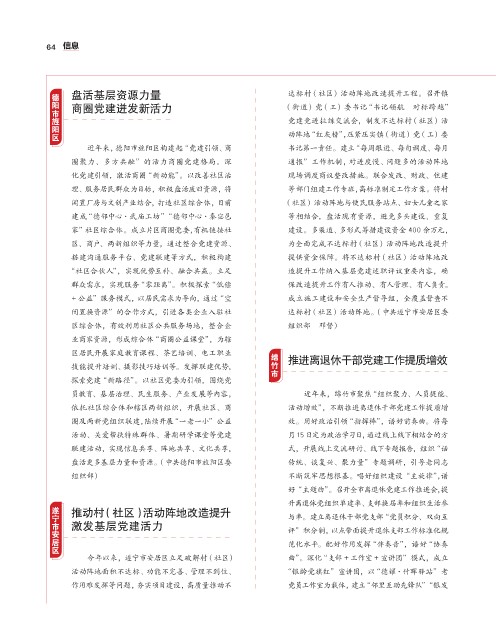 推动村 (社区)活动阵地改造提升 与率。建立离退休干部党支部“党员积分、双向互