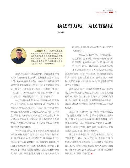 今年大 运会期间,他 在接到生 态环 境部推 送 出整改建议,解决了群众的烦心事。