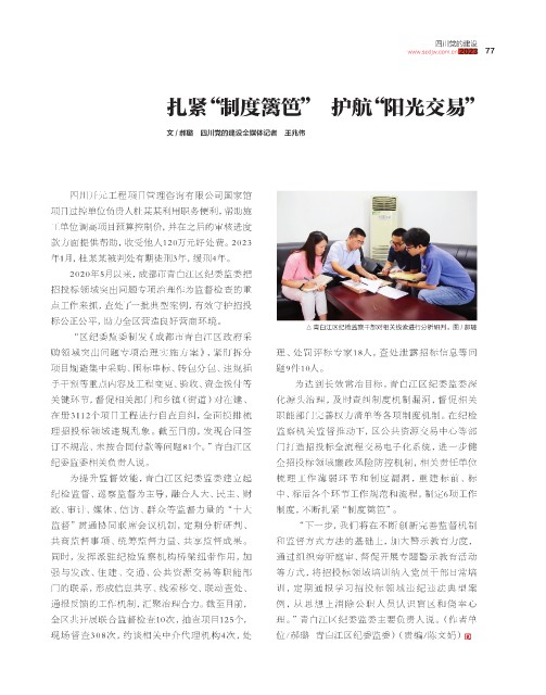 为提升监督 效能,青白江区纪委监委建立起 梳 理 工 作 薄弱 环 节 和 制度 漏 洞,重 建 标 前、标