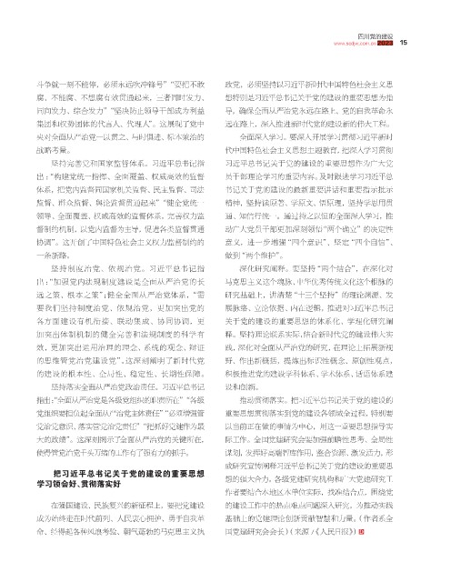 坚 持制度治党、依 规 治党。习近平总书记指 深化研究阐释。要坚持“两个结合”,在深化对