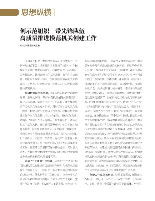 为推进机关党的建设的重要路径和抓手,与模范机关创 力战高温、防疫情,参与抗震救灾,推动机关党组织和
