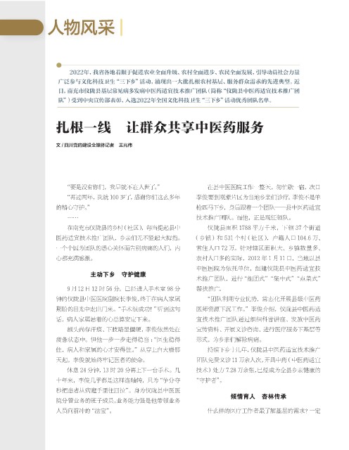 钟的仪陇县中医医院副院长李俊,终于在病人家属 “团队利用专业优势,常态化开展县级中医药