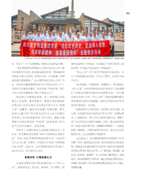 商”“2021-2022 年度西部物流百强企业”“2021 四 立足新起点,安吉集团将继续发挥党组织“红色