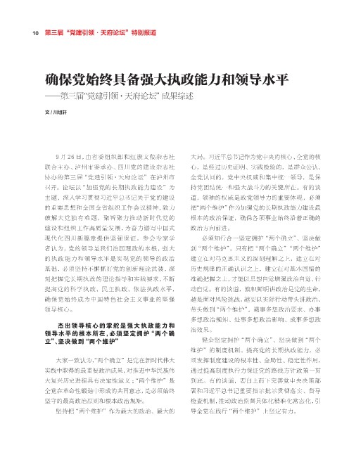 协办的第三 届“党 建引领·天 府论坛”在泸州市 全党认同的,党中央权 威和集中统一领导,是保