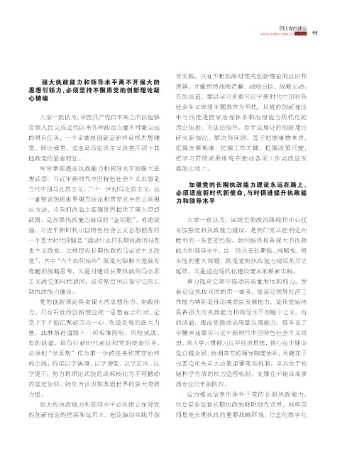 力量。 着力 提 高信息化 条 件下党的 长期 执 政能力。