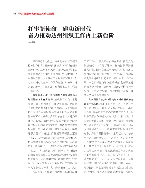 不懈用党的创新 理论凝心铸魂。达州市始终 部。全省组织工作会议强调,要鲜明正确用