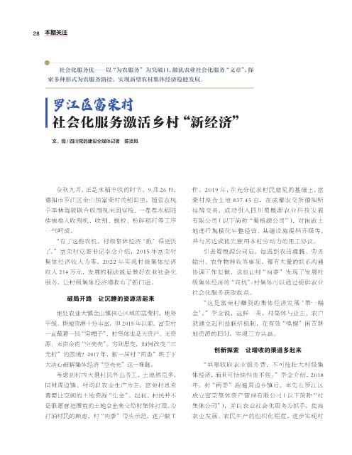 了。”富荣村党委书记李念介绍,2015 年富荣村 引进蜀粮源公司后,每遇到农田灌溉、劳务