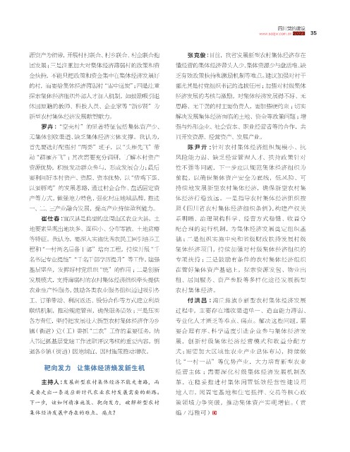 主持人:发展新型农村集体经济不能走老路,而 革,在 稳妥 推 进 村 集 体闲置低 效 经 营性 建 设 用