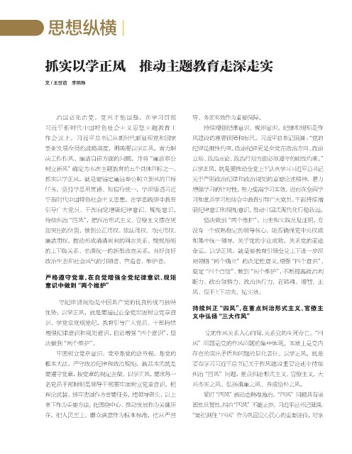 习近平新时代中国特色社会主义思想主题教育工 持续增强纪律意识、规矩意识。纪律和规矩是作