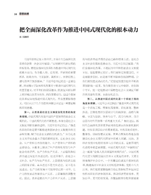 直接结合,从根本上解决了生产资料私有制与生产 化进程中的重要课题。中国式现代化的“中国特色”
