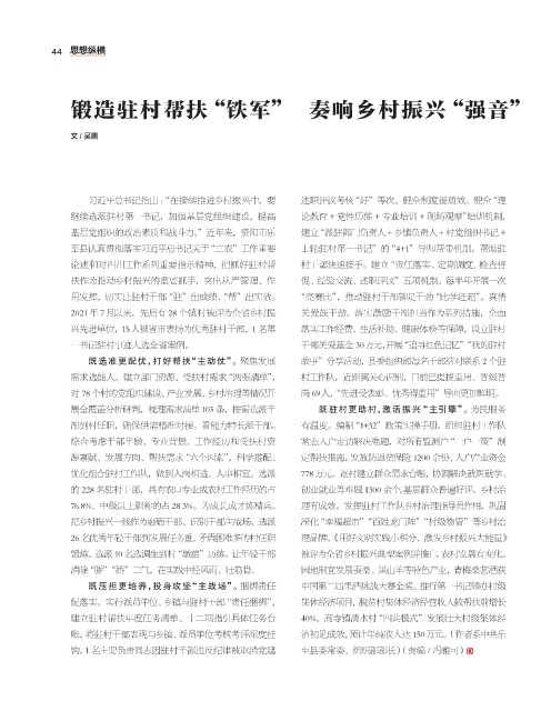 锻炼,选派 10 名选调生到村“墩苗”历练,让年轻干部 被评为全省乡村振兴典型案例并推广。农村发展有变化。