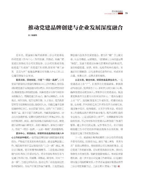 联系实际,因地制宜,打造“一项目一品牌”。 公司 立足长效,健全机制,增强党建品牌生命力。 一是