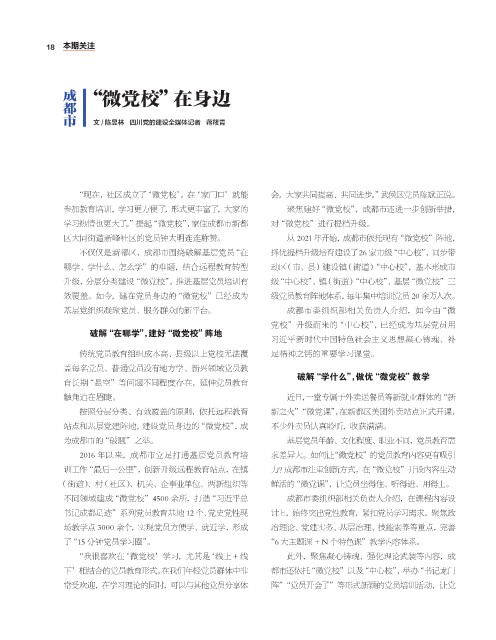 不同领域建成“微党校”4500 余所,打造“习近平总 成都市委组织部相关负责人介绍,在课程内容设