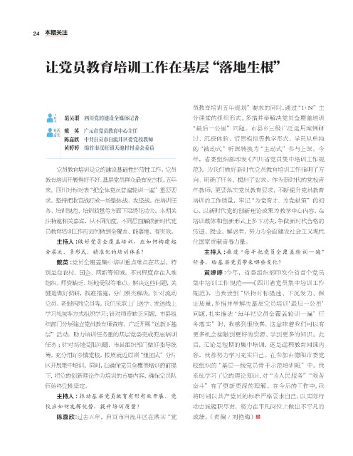 分层次、多形式、精准化的培训体系? 主持人 :推 进“ 每 年 把党员全覆 盖轮 训一 遍”