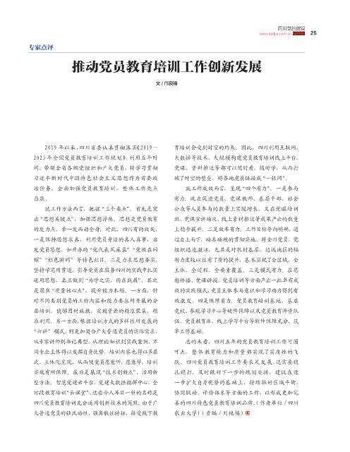 从专家讲师到书记典型,从理论知识到实践案例,不 总的来看,四川五年的党员教育培训工作可圈
