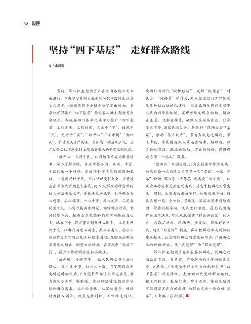 需所想所盼之后,广大党员干部还应率先垂范,努 下基层”优良传统,走好新时代党的群众路线,