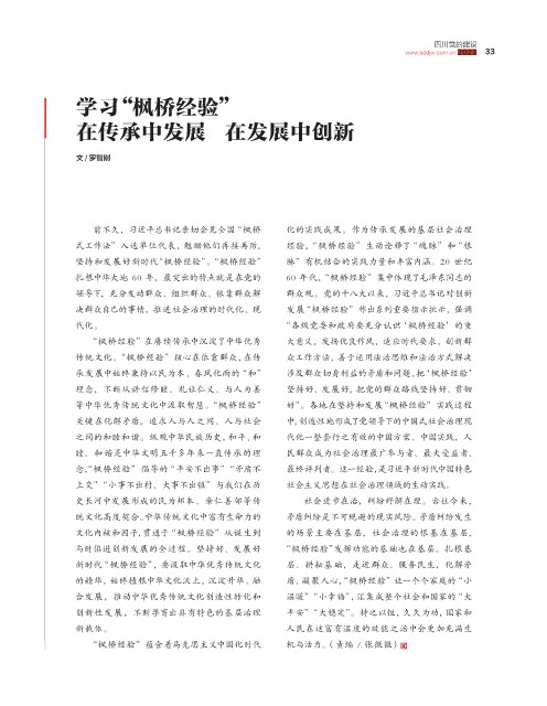 “枫桥经验”在赓续传承中沉淀了中华优秀 大意义,发扬优良作风,适应时代要求,创新群