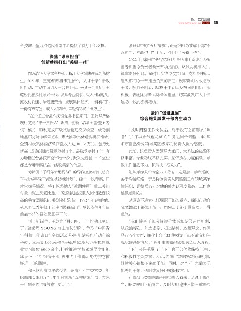 生,2022 年,王乾熙被绵阳市出台的“人才十条”新政 组织部门为干部担当负责的责任,旗帜鲜明为敢想敢