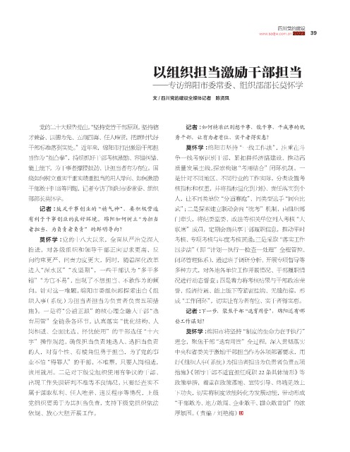 向。针对这一难题,绵阳市委组织部探索出台《组 誉、经济待遇、能上能下等紧密挂钩、无缝衔接,形