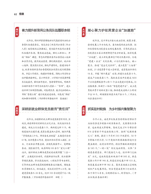 台,统筹安排新录用公务员到综合性岗位进行跟岗锻 机制,21 名党员骨干进入管理层,选育党组织书记