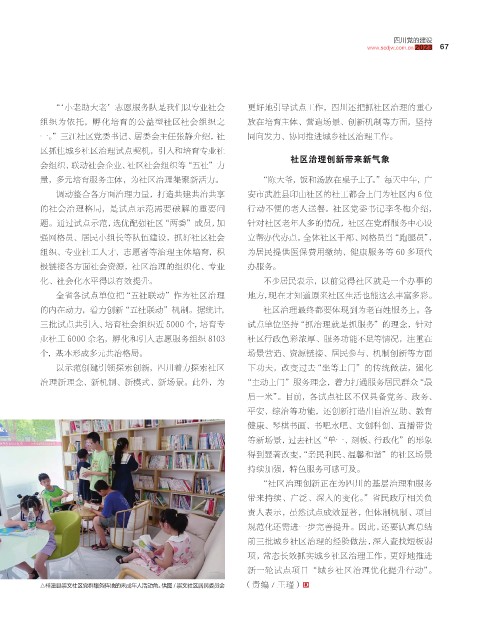 题。通过试点示范,选优配强社区“两委”成员,加 针对社区老年人多的情况,社区在党群服务中心设