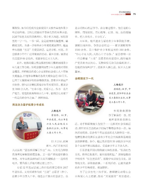 一代是我的分内之事。”唐国贵说。 关工委执行主任,从事