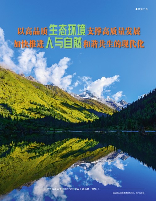 ●公益广告 生态环境 以高品质 支撑高质量发展 人与自然 加快推进 和谐共生的现代化 中共四川省委《四川党的建设》杂志社 制作 四姑娘山国家级风景名胜区。图 / 刘善文