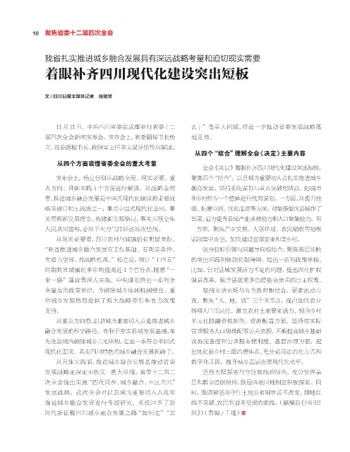 推进城乡融合发展进行专题研究,系统回答了新 线不突破、农民利益不受损的底线。(摘编自《四川日