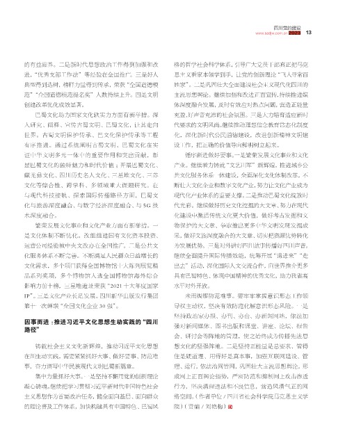 运营公司经验被中央文改办在全国推广。二是公共文 为发展优势。三是对外讲好四川故事传播好四川声音。
