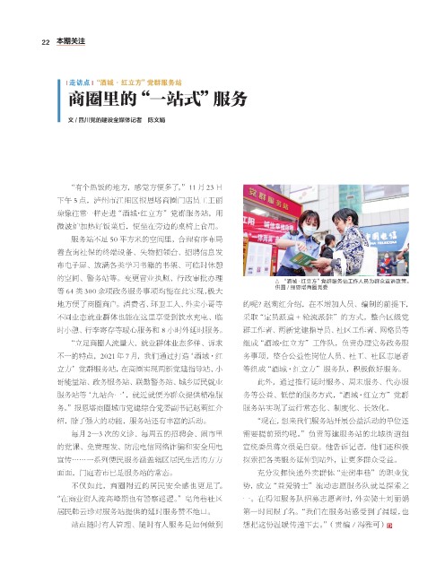 “立足商圈人流量大、就业群体业态多样、诉求 组成“酒城·红立方”工作队,负责办理党务政务服