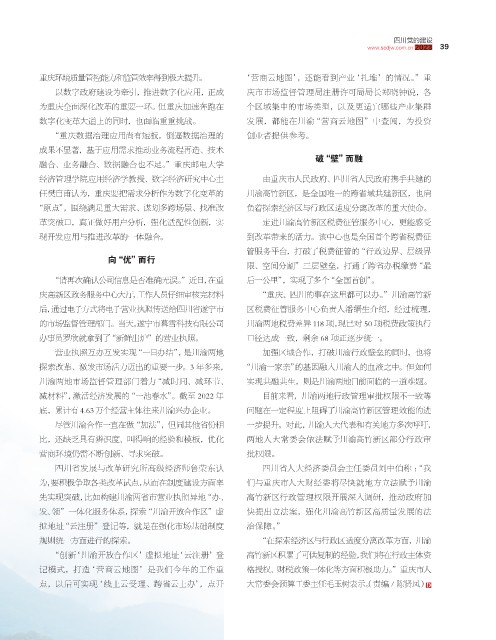 规则统一方面进行的探索。 “在探索经济区与行政区适度分离改革方面,川渝