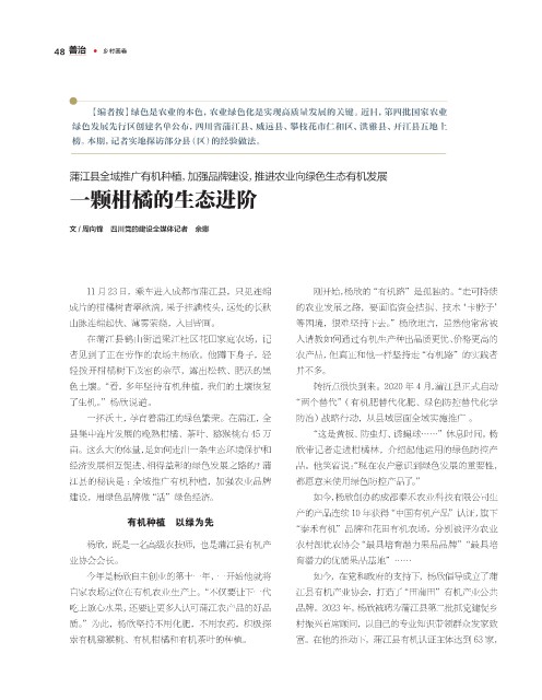 蒲江县全域推广有机种植,加强品牌建设,推进农业向绿色生态有机发展