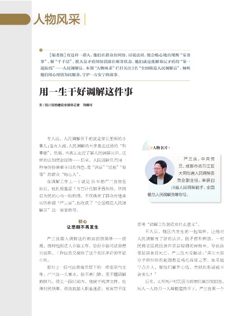 在调解工作上一干就是 25 年的严三良便是 员会副主任。荣获四