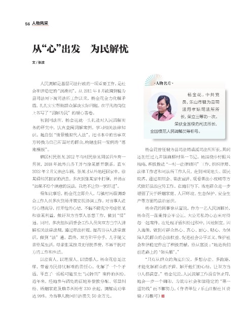 人民调解是基层司法行政的一项重要工作,是社 ·人 物 名 片 ·