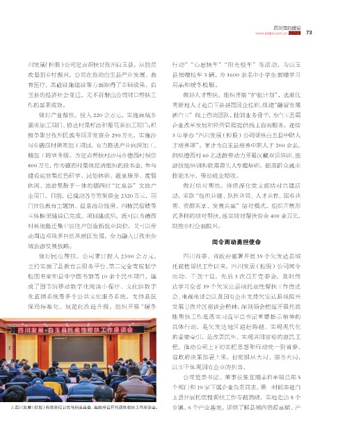 川发展(控股)公司定点帮扶甘孜州白玉县。从脱贫 行动”“心愿快车”“阳光校车”等活动,为白玉