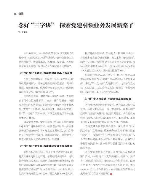 想、党的二十大精神。2023 年以来,成都分行党委开 发展,各党支部在经营一线、市场前沿、服务末端广