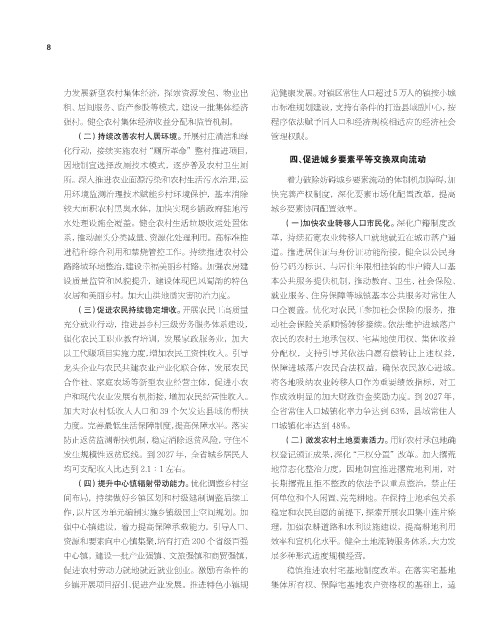 四、促进城乡要素平等交换双向流动