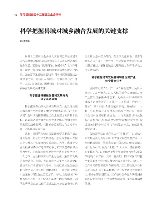 对城乡融合发展关键支撑作用的基本前提,而“五区 此,立足县域产业 发展基础培育主导产业,能够