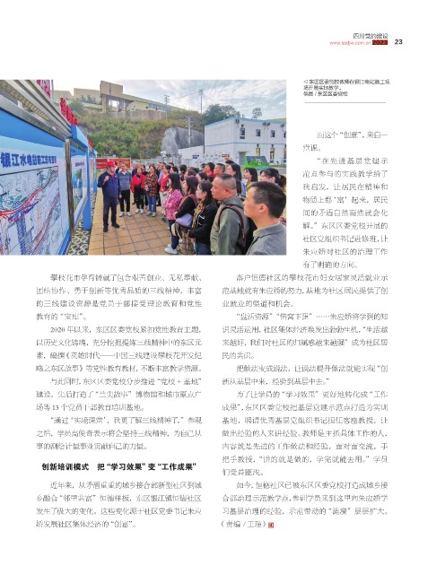 场等 13 个党员干部教育培训基地。 成果”,东区区委党校把基层党建示范点打造为实训