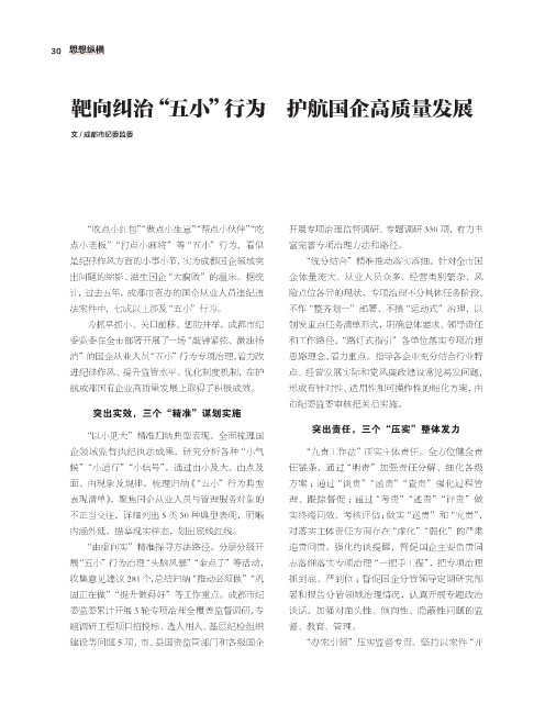 航成都国有企业高质量发展上取得了积极成效。 形成有针对性、适用性和可操作性的细化方案,由