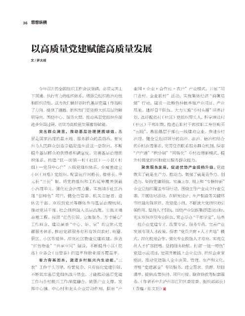 群服务体系,推动党群服务有形有效向农村、商圈、 发展专项人才政策,探索“党员共育 +人才共培”模