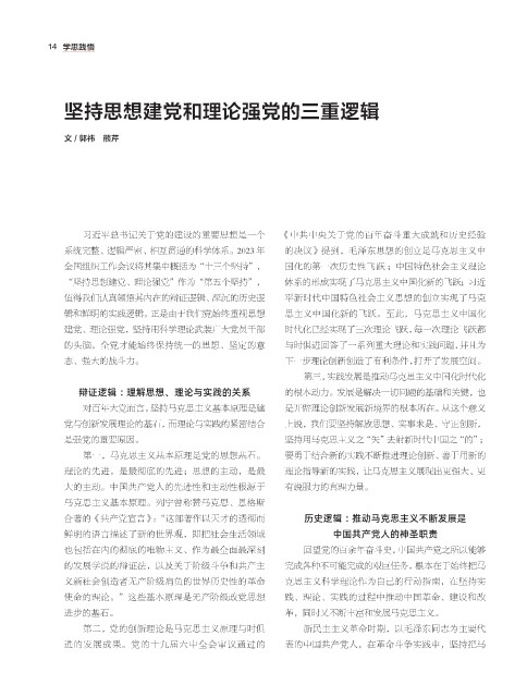 辑和鲜明的实践逻辑。正是由于我们党始终重视思想 思主义中国化新的飞跃。至此,马克思主义中国化