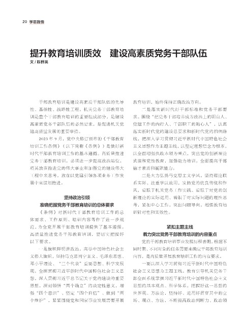 培训工作条例》(以下简称《条例》)是做好新 主义思想作为主题主线,以坚定理想信念为根本,